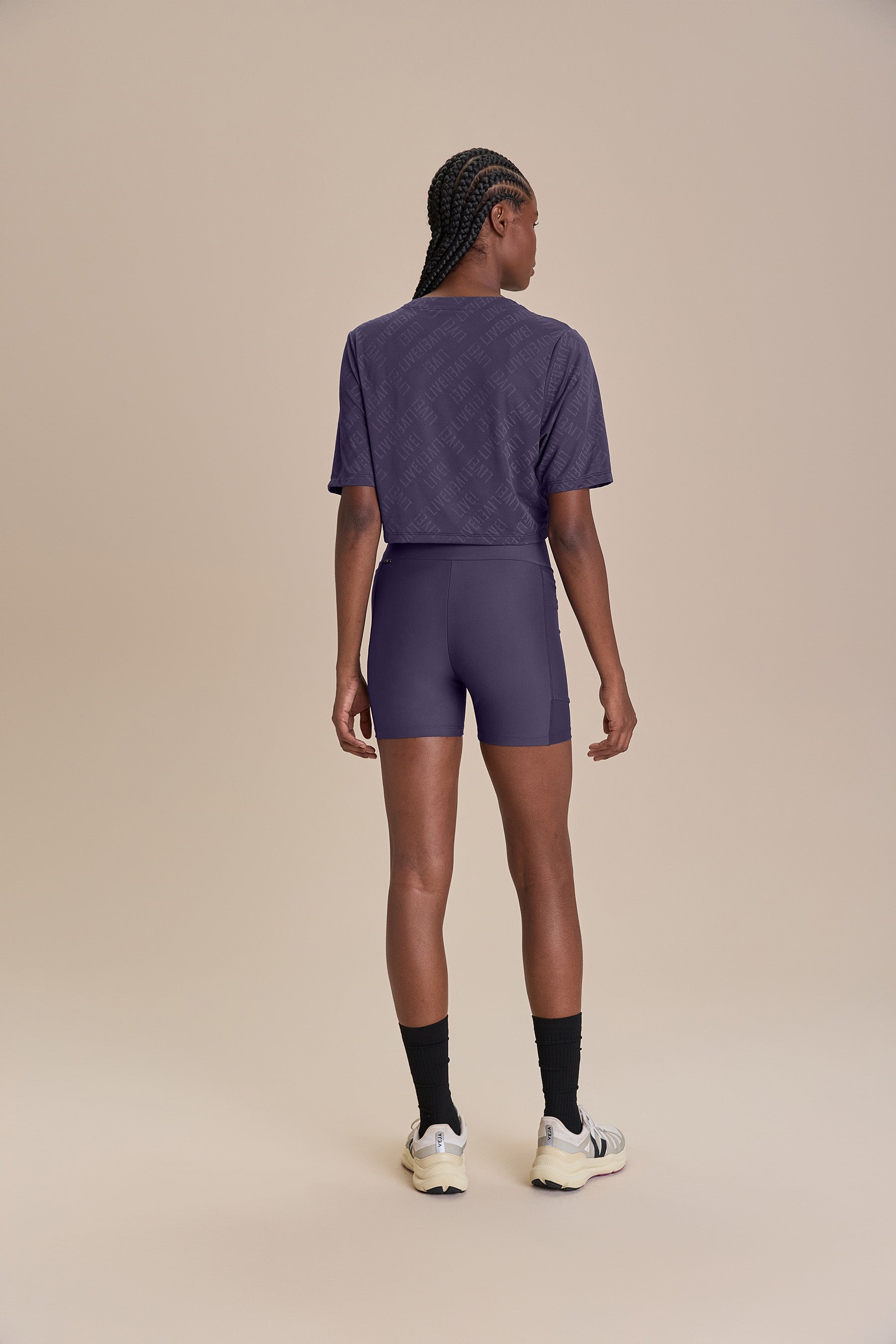 A Blusa Cropped apresenta modelagem confortável e levemente solta ao corpo que oferece liberdade de movimento. O jacquard personalizado com a Assinatura LIVE! adiciona um toque exclusivo ao design, elevando a peça com sofisticação.