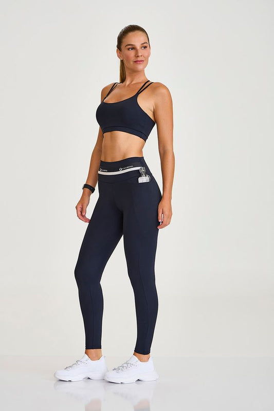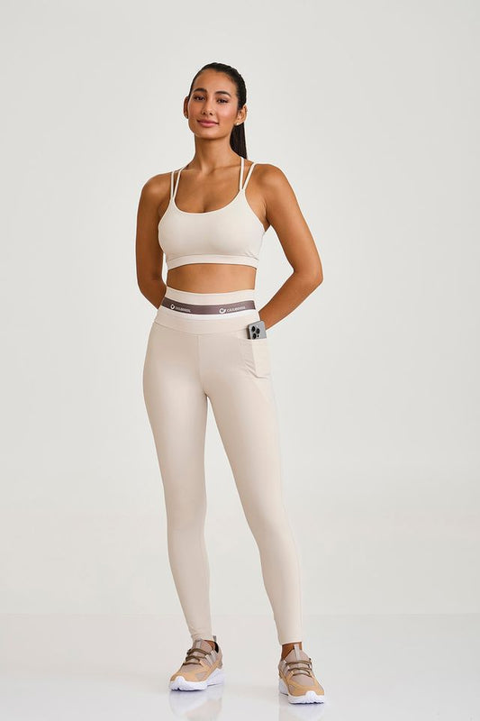 Legging em tecido confortável com proteção UV+, possui elástico personalizado no cós e bolso em...