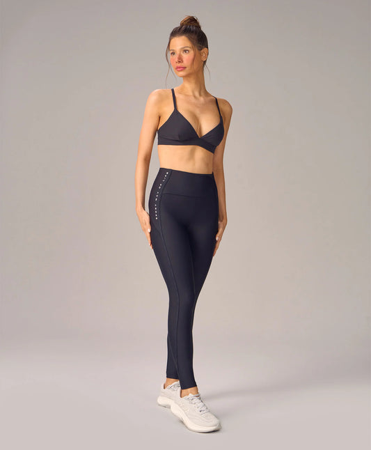 Confeccionada em tecido de poliamida com alta elasticidade, toque macio e leve brilho, a Legging...