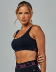 O Top Alta Sustentação Elástico Impulse possui decote redondo e abertura nas costas garantindo um modelo moderno que atrelado ao elástico personalizado no cós e aos bojos removíveis proporcionam Média Sustentação para atividades de Leve a Médio impacto.