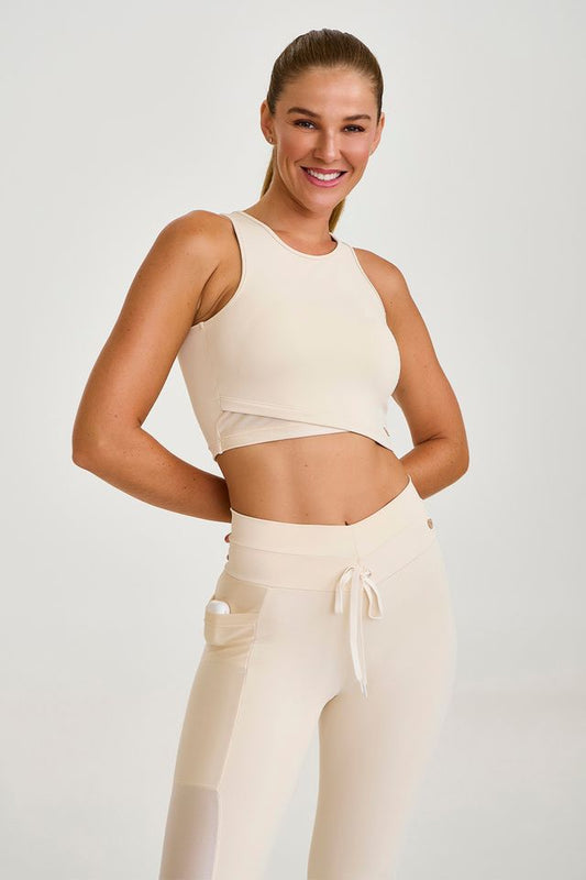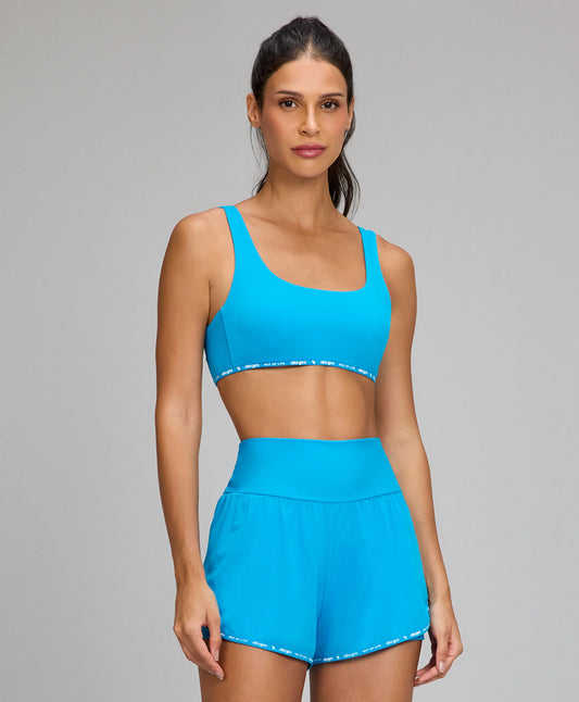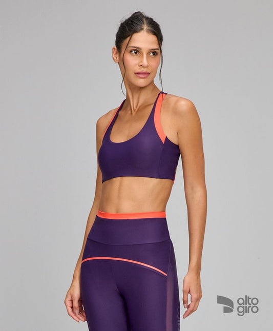 O Top Média Sustentação Movement possui recortes que valorizam o busto. Com detalhes em galão...